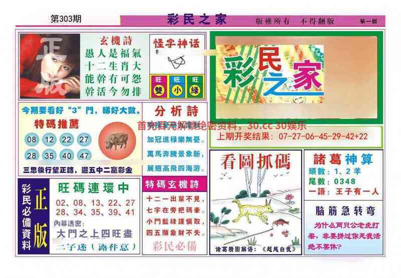 305期:绝杀三肖【鸡兔龙】开:鼠42准