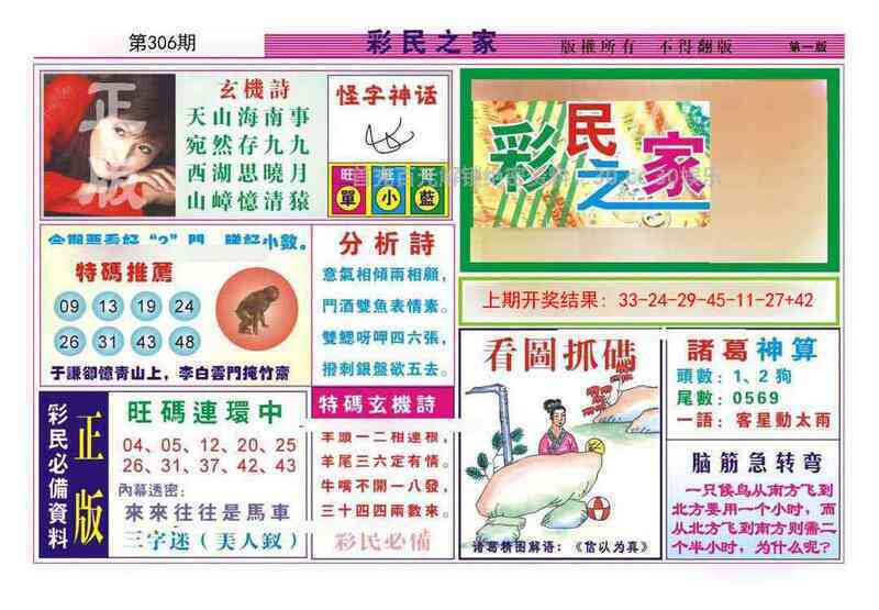 306期:绝杀三肖【羊蛇狗】开:牛17准